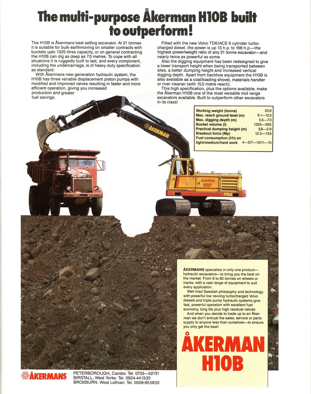 The Swedish built Åkerman range of excavators had a solid reputation in the construction industry. The Volvo diesel engine powered machines were often referred to as the Rolls Royce of excavators by operators of that generation. The H10B model seen above was a 21-tonne class machine and was one of the company’s best sellers.