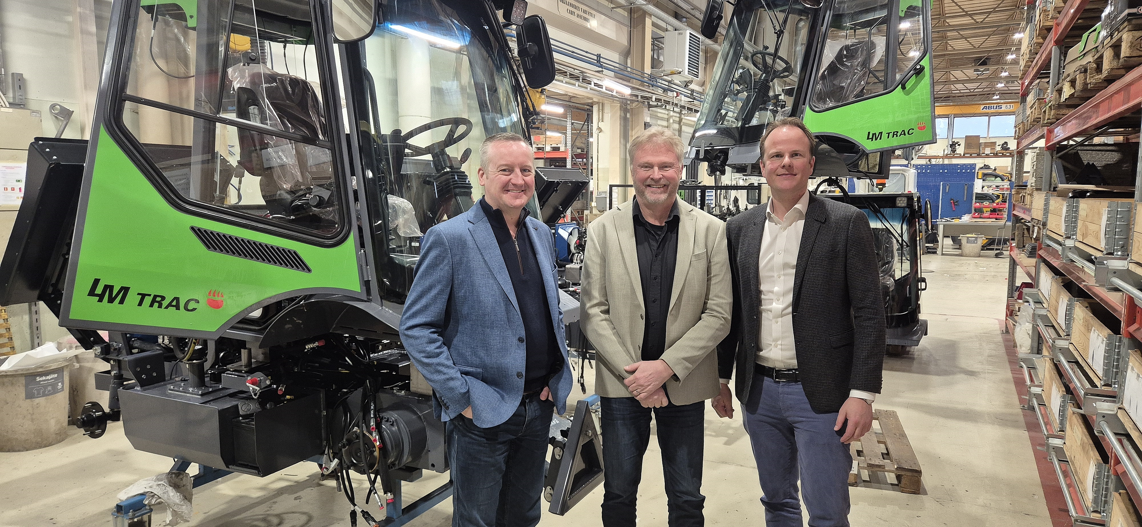 Pictured above : Jorik Kuiken (right), Managing Director of SMT Netherlands B.V. visited the manufacturing of LM Tracs in Rauma. Rob Teunisse (left), Managing Director of Pols B.V., which is responsible for the distribution of LM Trac machines in the Netherlands, also accompanied him on the trip. In the middle is Lai-Mu CEO Ari Lindholm.