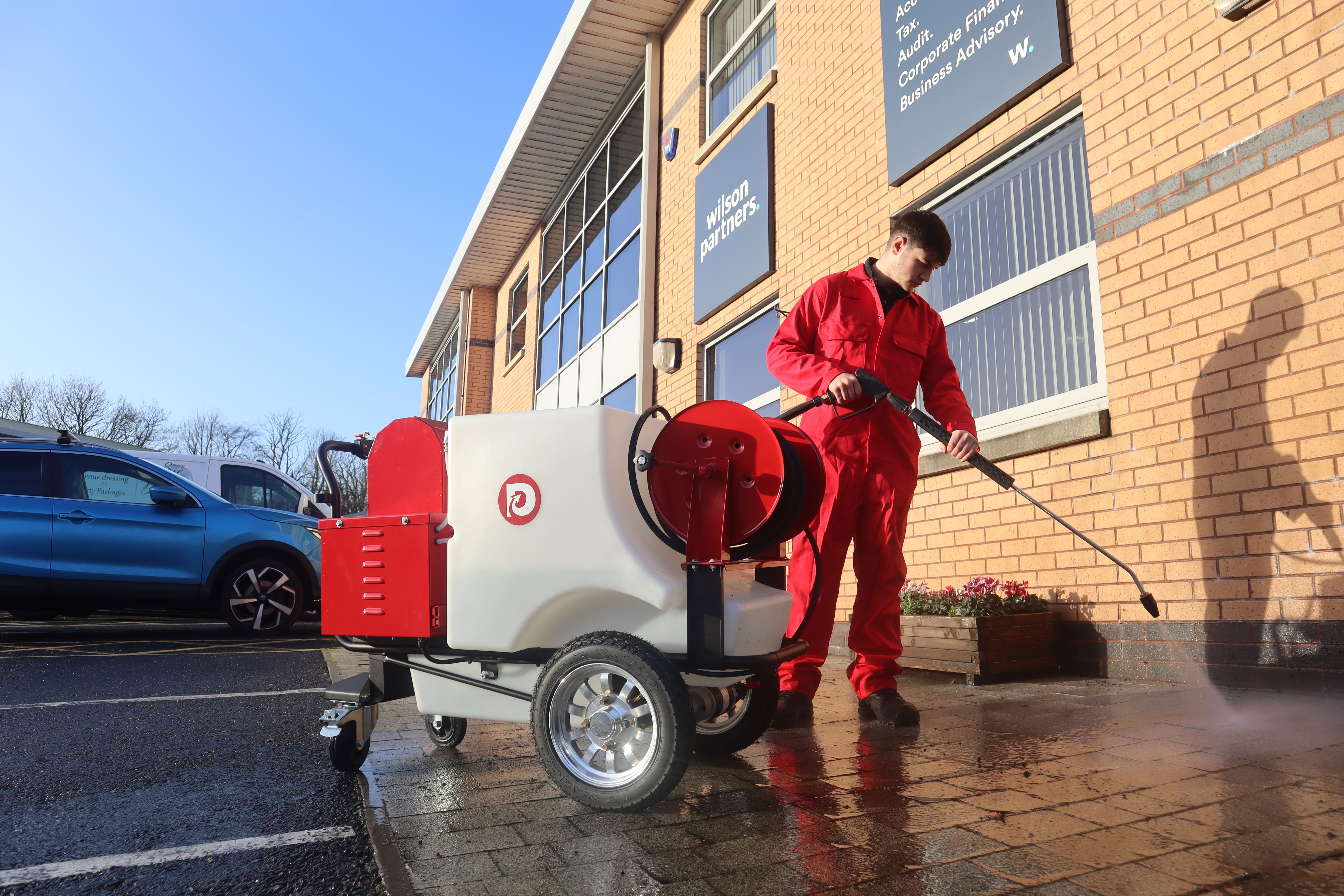 The Demon Pressure Washers Tornado Maxi Bowser E is the first fully electric, self-propelled industrial pressure washer with a genuinely long run time. Using a 24V LiFePO4 battery system, it delivers up to four hours of real-world working time without cables or generators. With a 225-litre onboard tank and powered drive, it provides true go-anywhere cleaning for construction, facilities management and local authority work.