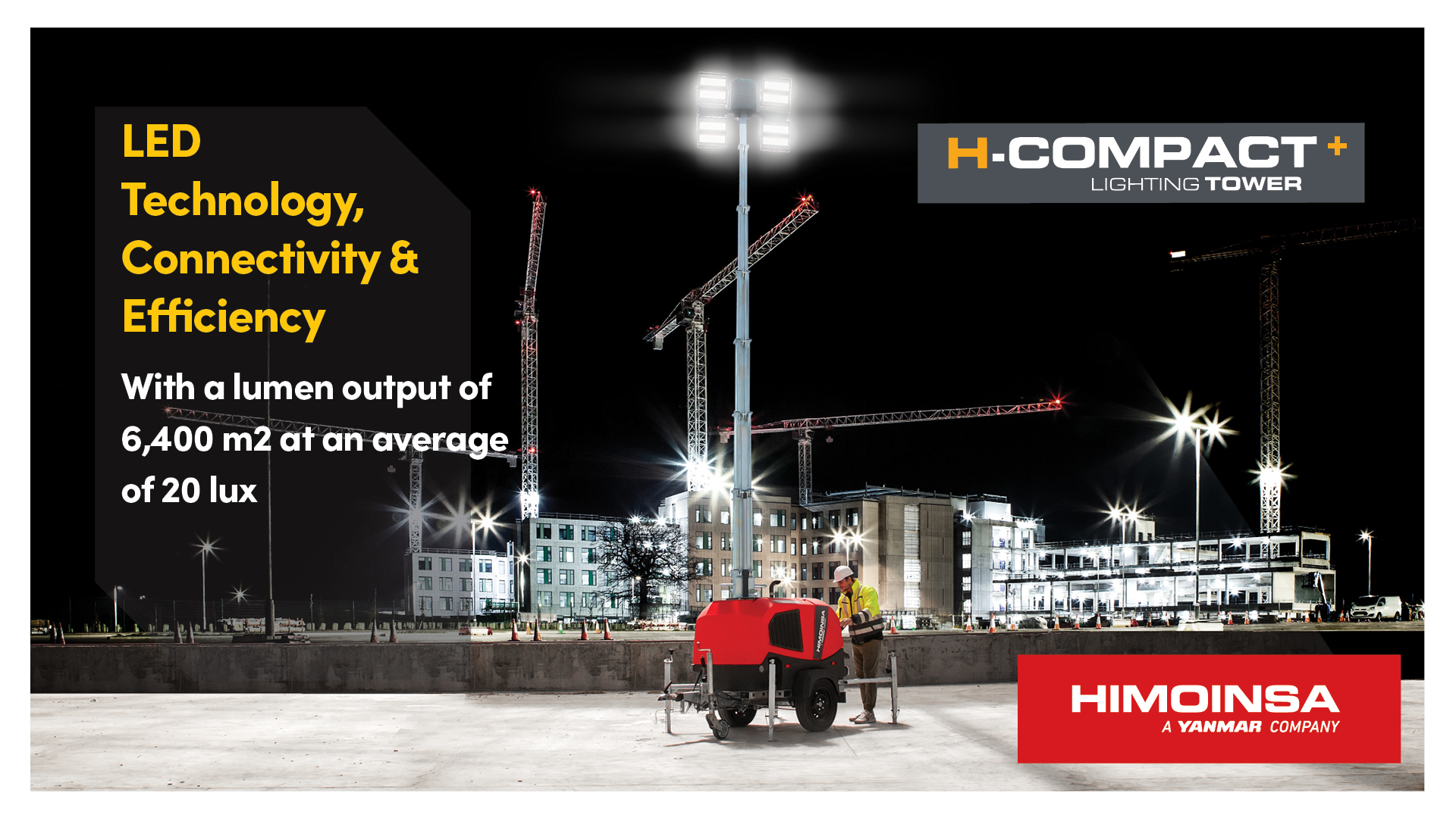 Himoinsa’s HCompact+ lighting tower rethinks traditional design through the use of a heavy-duty polyethylene canopy, reducing weight, lowering noise and enabling full recyclability at end of life. Delivering 210,000 lumens with ultra-quiet operation, it is engineered for construction, rental and events where low noise, efficiency and sustainability are essential.
