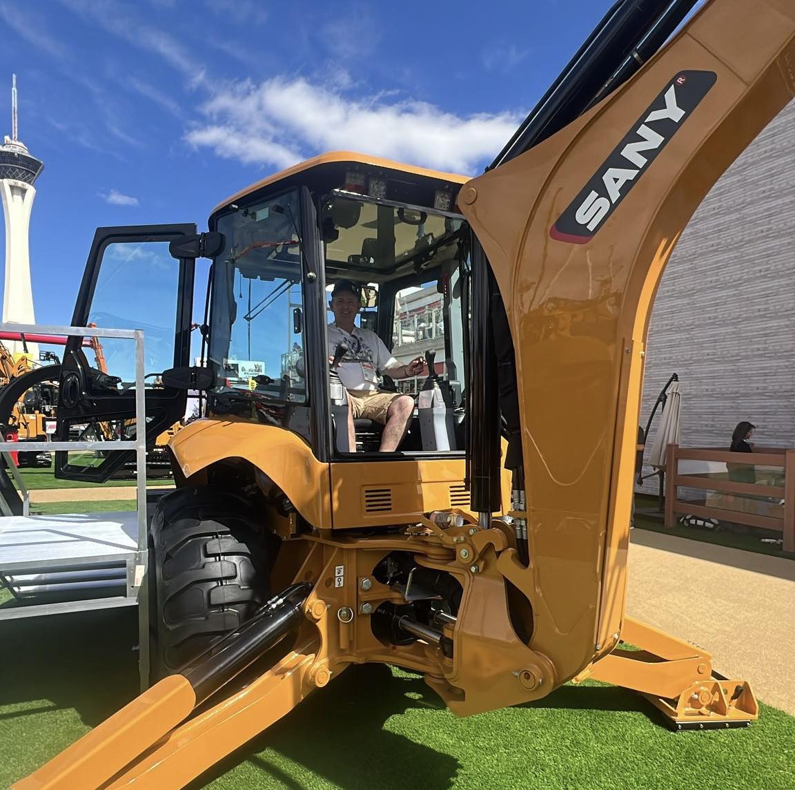 Ken has been romancing a Chinese brand in recent months undertaking some test driving for them on 9-tonne excavators, but in Conexpo-Con/Agg he was visiting another brand, Sany, where he was keen to take a look around their backhoe loader the BHL95, this machine has not been seen on the UK market as yet, but with a strong focus on Europe in general, you would have to think there’s a good chance of them coming.