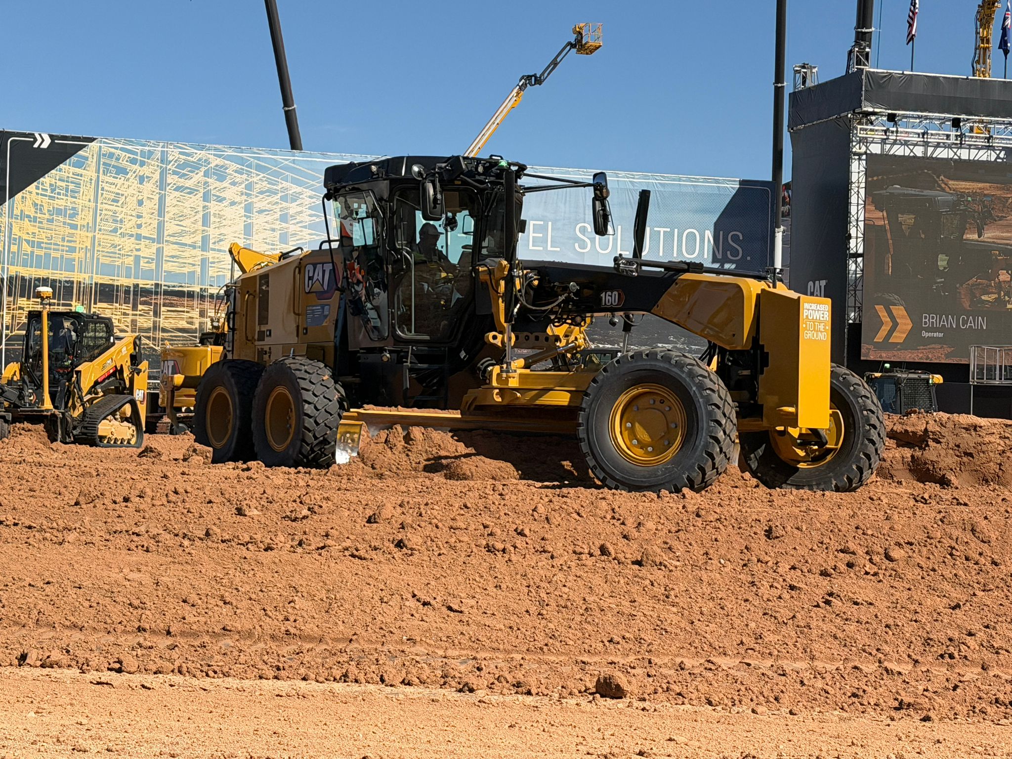 Also doing the rounds in the demonstration arena was Caterpillar’s latest 160 model motor grader, being showcased by demonstration operator Brian Cain.