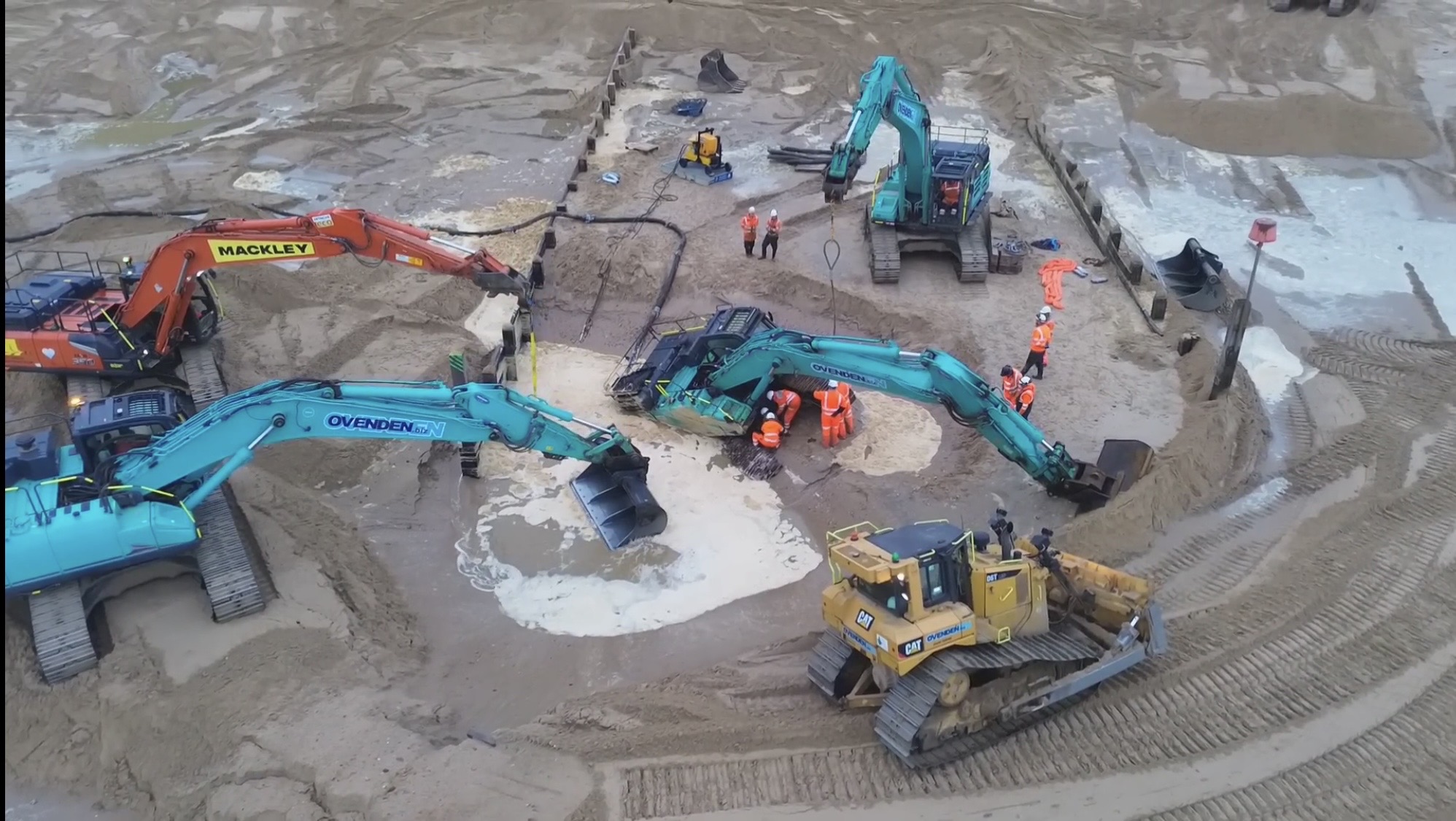 In this incident that took place in November 2023, the Kobelco SK500LC excavator was working on a long running groyne replacement scheme, to protect beach erosion on Bournemouth Beach, coincidently not that far away from the section where Dave Vickers, Neil Grainger and myself, were recently filmed doing the You Bet on Tour Digger Challenge, earlier this year.
