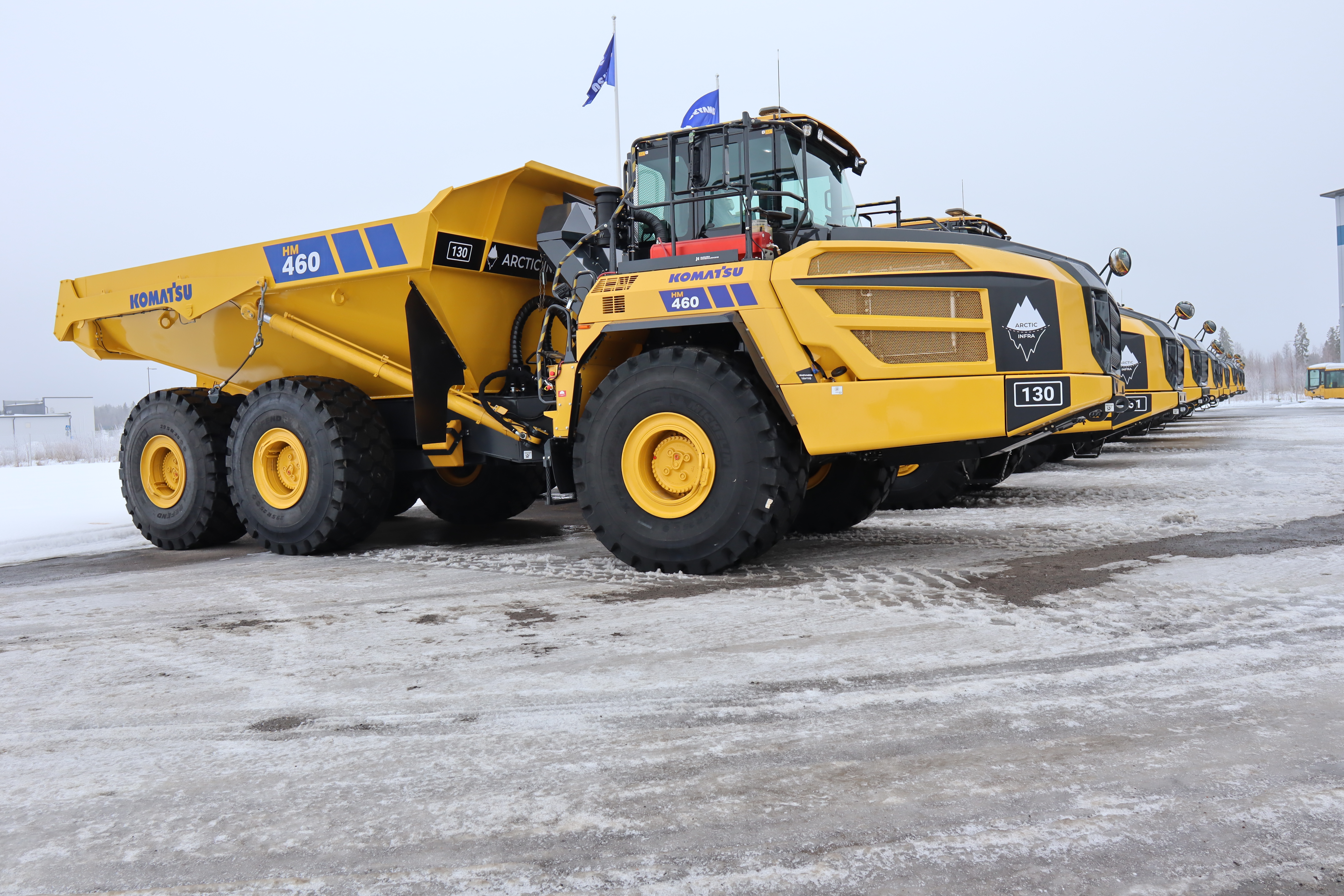 Arctic Infra Oy, based in Sodankylä, acquired 12 HM460-6 dump trucks in a single purchase. Ten of the trucks were presented for a group photo at the handover event in early March. After final outfitting, these brand-new machines will be delivered to the Kevitsa mine situated in Sodankylä, with all 12 units being operational by April 2026.