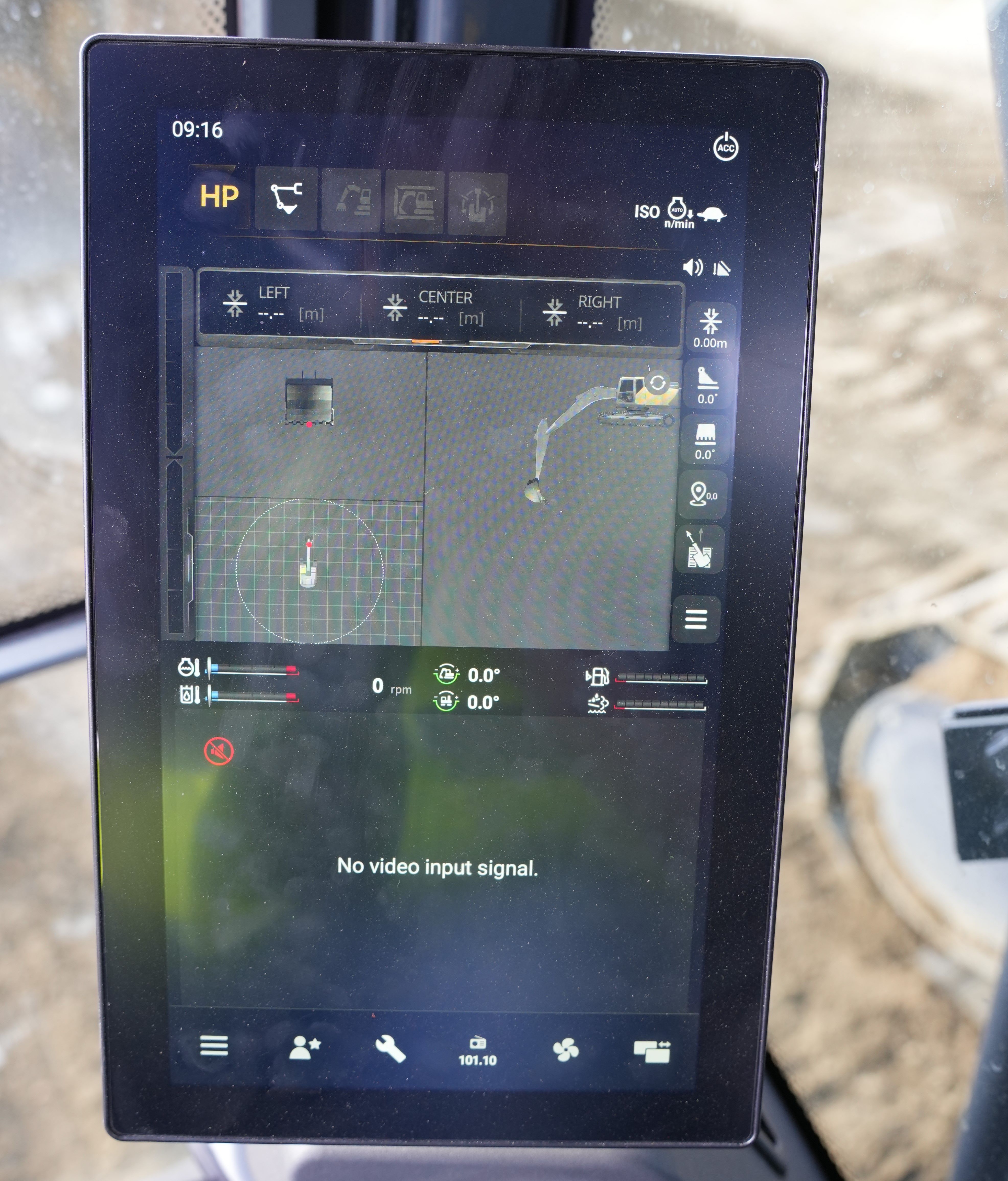 A 12.8” high-definition screen/monitor was fitted on this machine, but apparently production models will feature two of them. As per industry standard the monitors can display a host of different functions and allow the operator to personalise his own preferred machine settings.