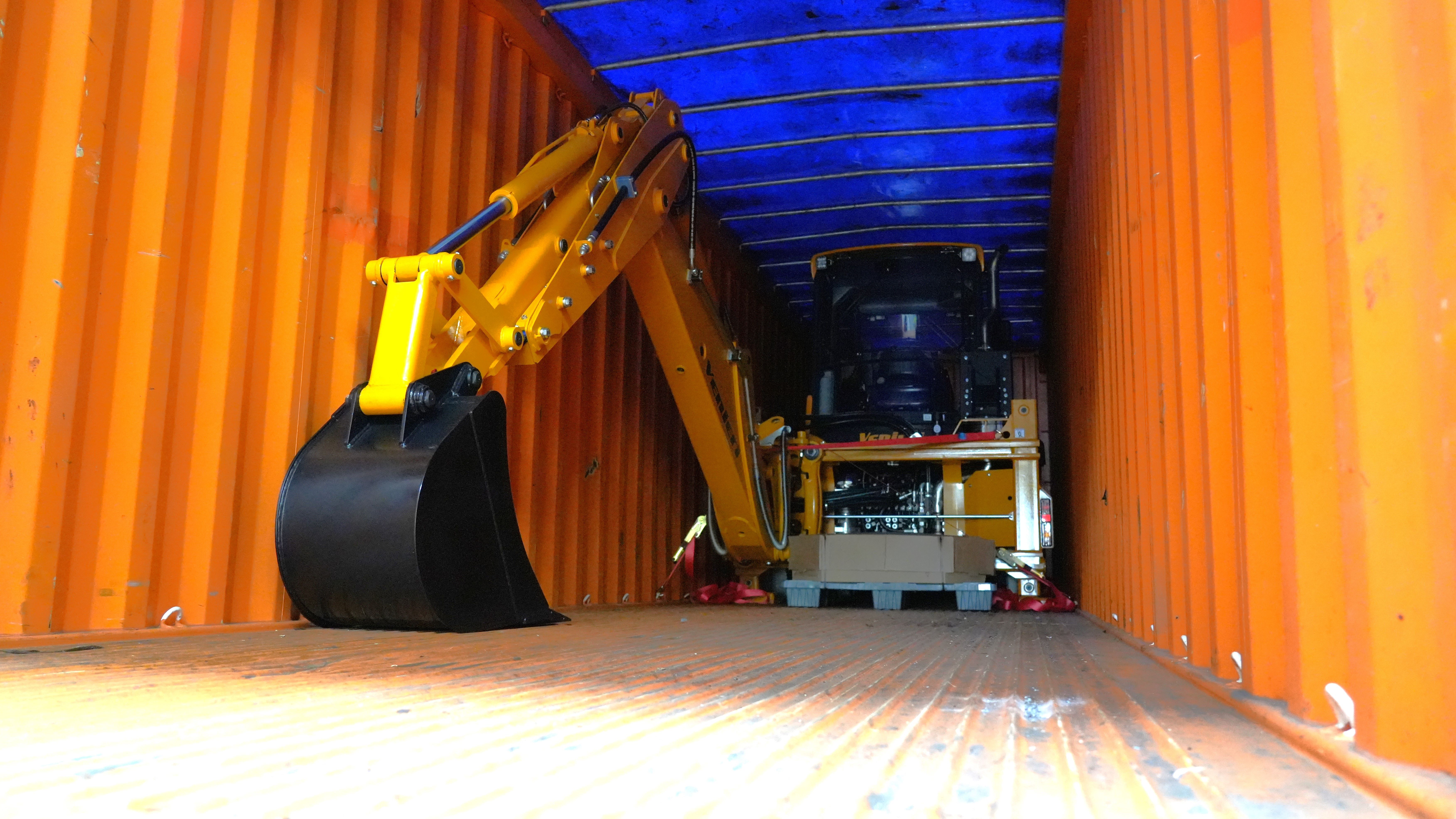 Unfortunately, we were unable to take photos inside the assembly area, however I was permitted to take photos of an order of machines that were being loaded into a container including a large backhoe loader, that would be heading for Canada, which according to Venieri’s Managing Director Filippo Muccinelli Venieri, has become a very successful market for the company, especially in winter time when the machines are so often deployed on snow clearance work. The backhoe itself is loaded with its wheels removed, driving into the container on dummy wheels, with the regular wheels being loaded into the container last on a pallet.