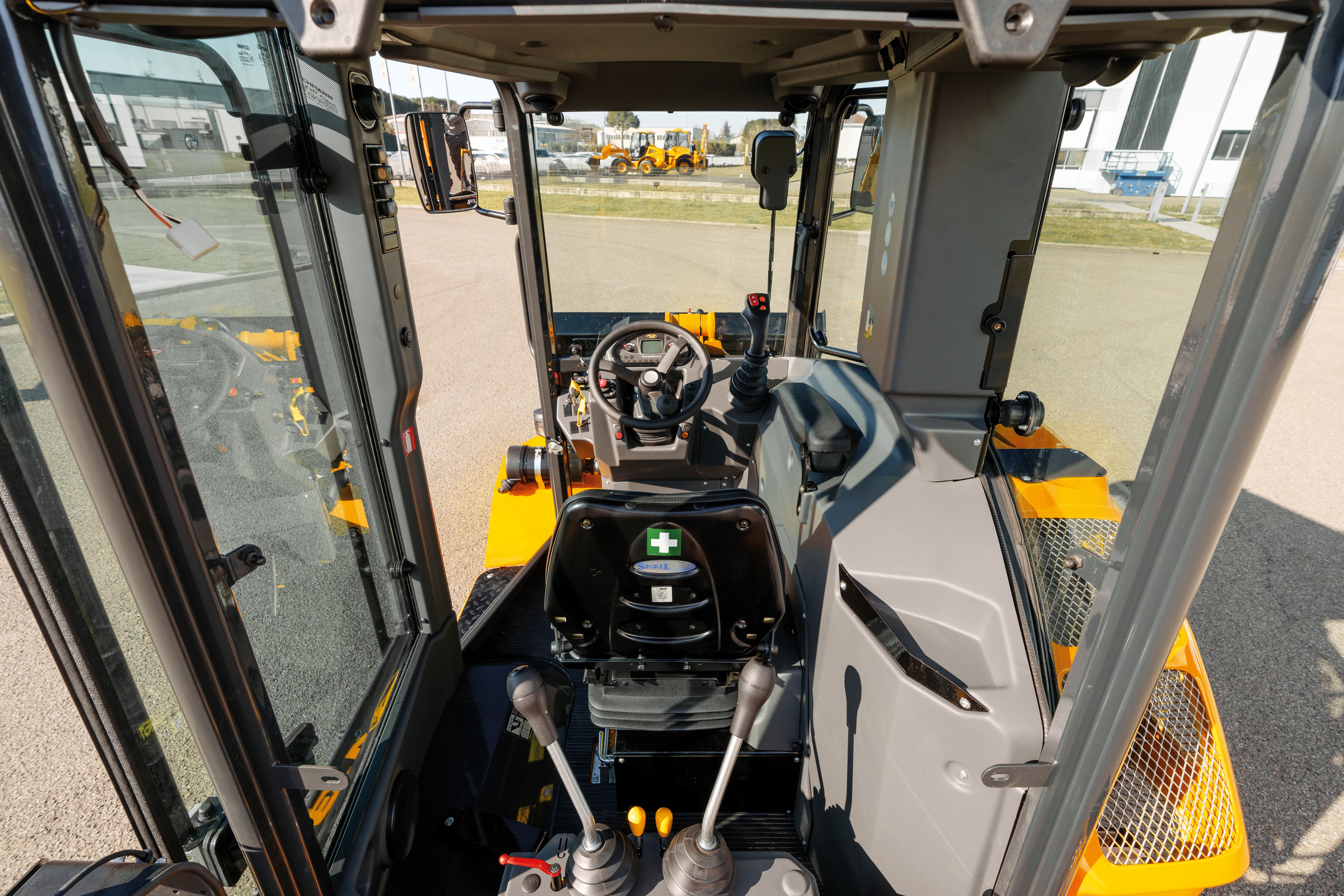 Stepping up into the cab, I had a feeling this is just the right size machine for someone of my stature, getting myself comfortable in the seat and surveying the surroundings, I can’t lie, it does feel rather cosy in there, although this was the new style XL cab, which has apparently been widened by 15cm to allow more space.